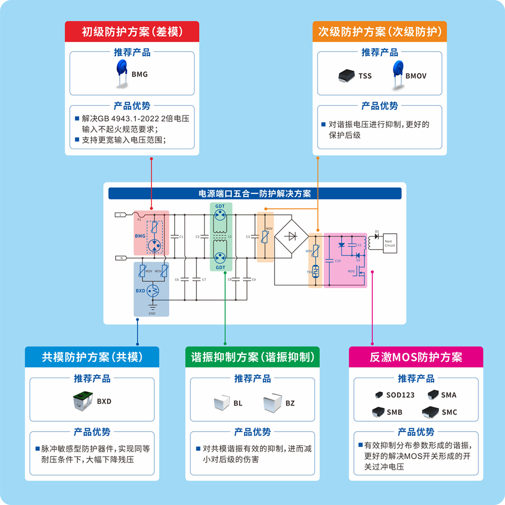 ▼看點一:電源端口五合一防護解決方案