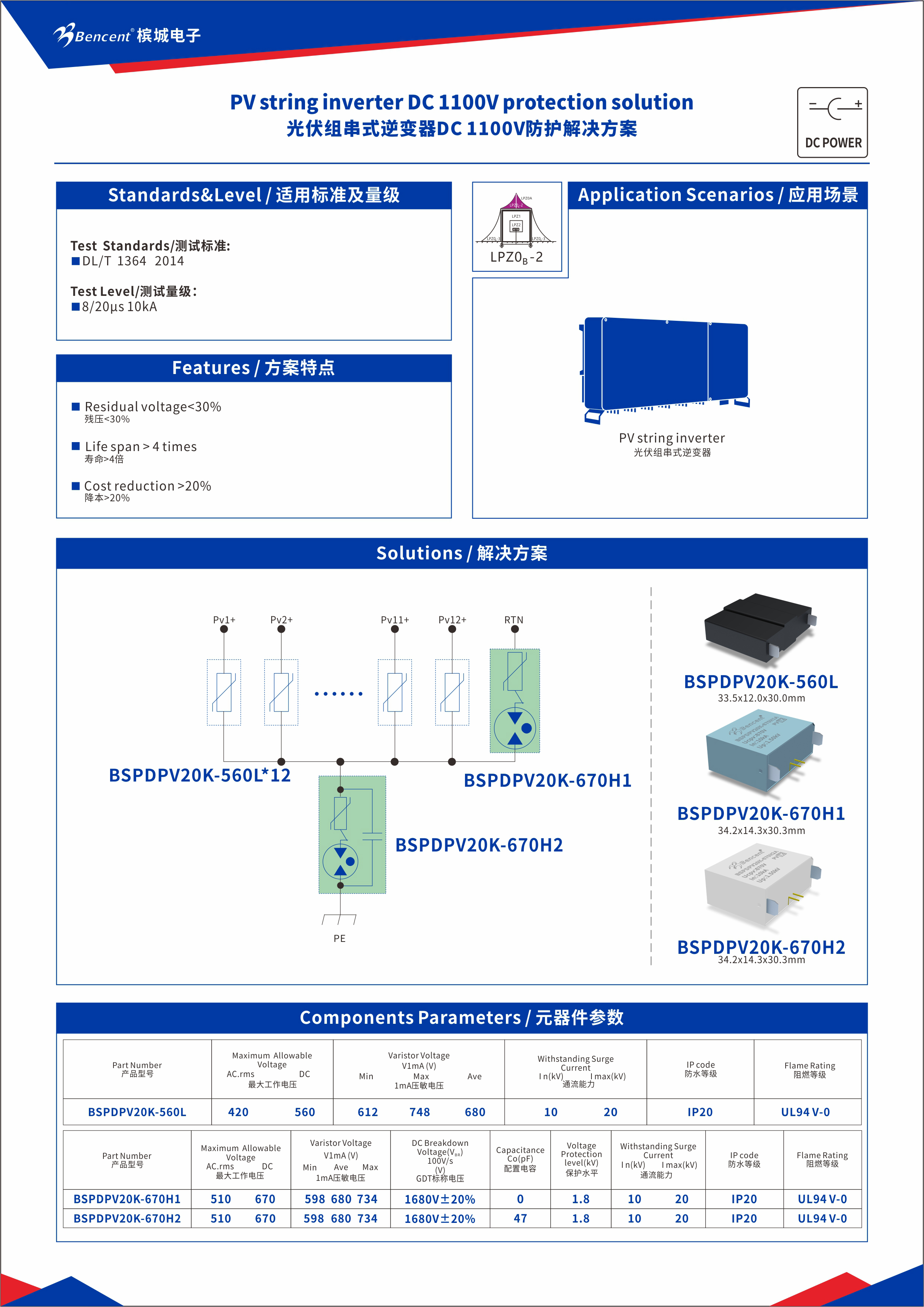 ? 光伏用DC接口解決方案BSPDPV20K系列——在降低成本的同時(shí)有效解決MOV的直流老化問(wèn)題